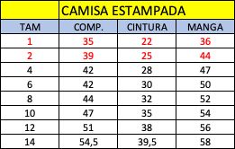 📏 Tabela de tamanhos